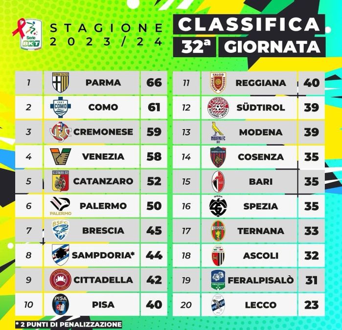 Manca ormai sempre meno al termine della stagione regolare di Serie B. Il campionato cadetto rimane però un quaderno bianco, con una storia ancora tutta da scrivere e con tutti i verdetti ancora da dare. Andiamo ora a rivedere cosa è stato scritto nel paragrafo della giornata 32.