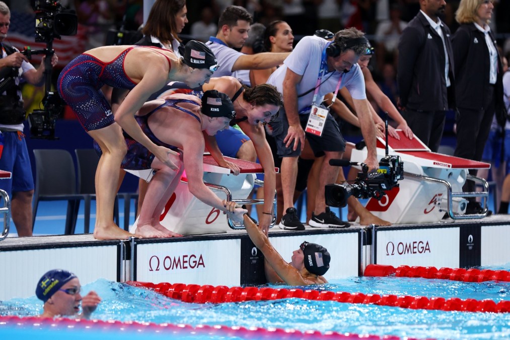 Ultima gara in vasca per quanto riguarda questa edizione dei Giochi Olimpici, la 4×100 mista femminile. Nella frazione a dorso subito la McEwon per l’Australia che però viene anticipata dalla statunitense Smith. Seconda frazione, quella a rana, dominata dalla King che crea un gap significativo nei confronti di Canada e Australia. Nella farfalla la Walsh aumenta il vantaggio e lancia gli USA verso il record del mondo. Nell’ultima frazione l’Australia è favorita ma il vantaggio delle statunitensi è enorme, tanto che Molly O’Callaghan non riesce a recuperare nulla su Torri Huske. Oro dunque per gli Stati Uniti, argento per l’Australia e bronzo per la Cina.